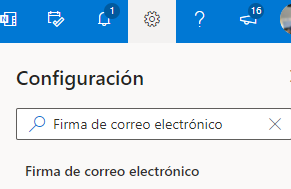 Haz click en el cuadro para buscar y escribe "Firma de correo electrónico".